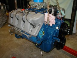 Getting ready for its first dyno run at Garry Grimes Twisted Engines, Facility. The 735 cfm Holley is a little small for the 512 ci. Calculations indicated that the engine should stop breathing around 4,800 RPM. (See Rebuilt notes). |