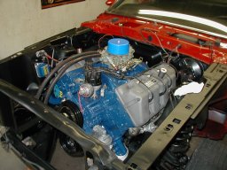 The engine is now ready to install back into the engine bay. Notice the original spark plug wires and distributor cap. Not too bad for 34 year on the car. | ![]() |