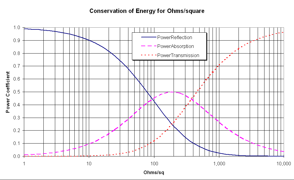 The loss coefficient A is the ratio of the power absorbed in the ohms /sq. to the incident power